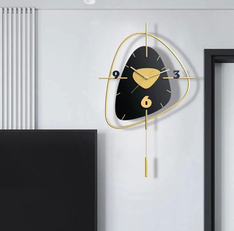 Large Wall Clock with Pendulum – Modern Geometric Round Clock